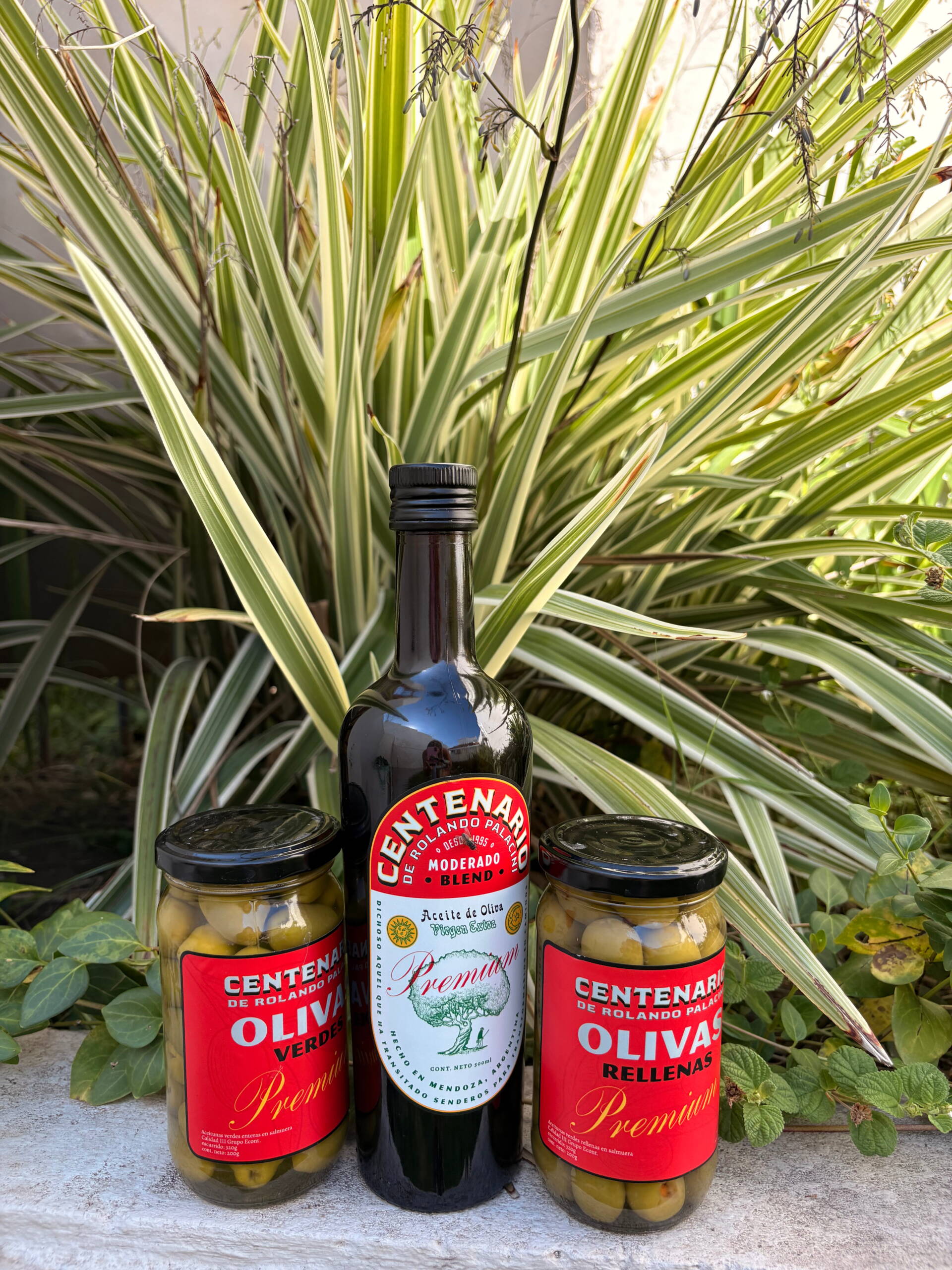 Combo gourmet con 2 botellas de AOVE 500 ml + aceitunas a elección (verdes o rellenas).