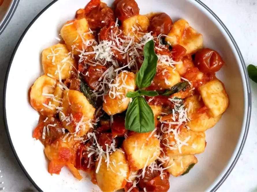 Ñoquis de papa con crema de AOVE, ajo confitado y tomates cherry
